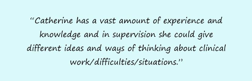 After nineteen years working in the NHS Catherine set up her own independent clinical psychology practice and can provide supervision and support to Clinical Psychologists wishing to do the same.